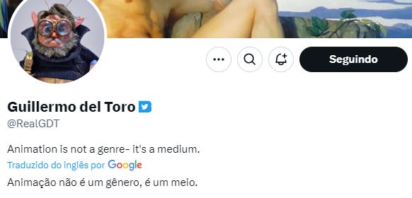 Em resposta a essa galera, deixo aqui a bio do cineasta Guillermo del Toro nas redes sociais: