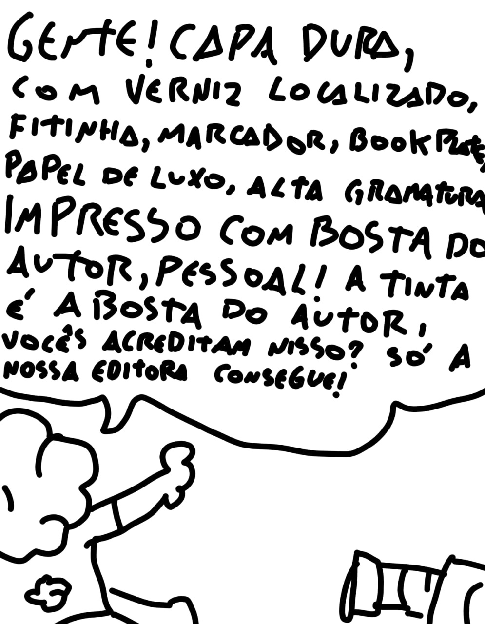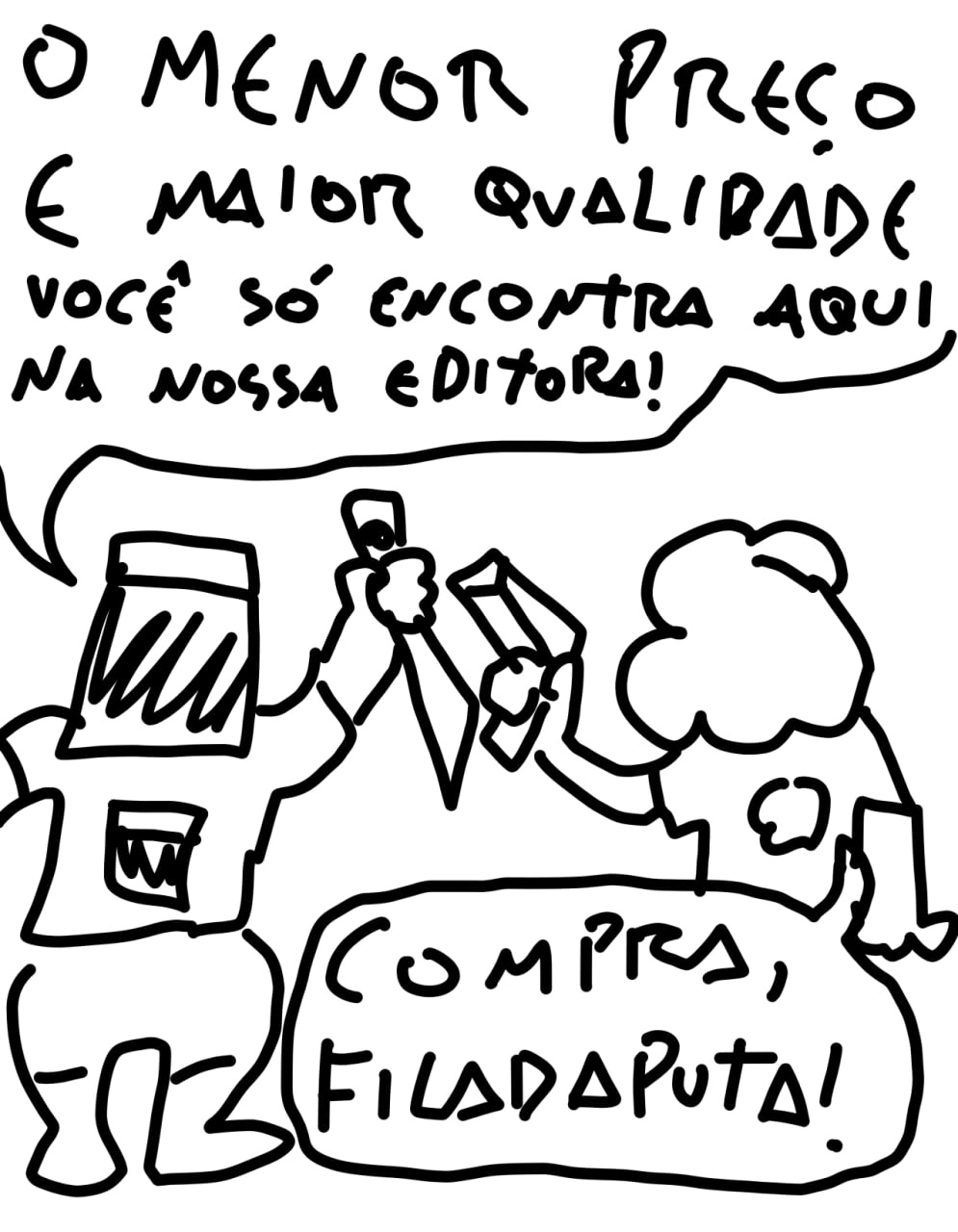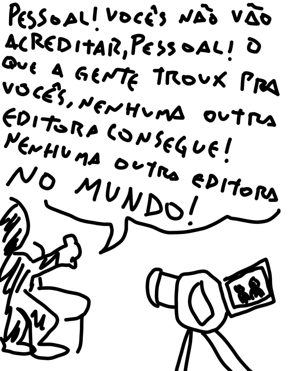 tô dando esse preâmbulo todo porque eu recebo o trabalho do magdiel com certa frequência na minha tl, eu sei que eu tenho alguns amigos queridos que gostam do trabalho dele e eu não quero que nem o magdiel nem meus amigos se sintam pessoalmente atacados por eu achar essa tirinha incompreensível, mas ela é, incompreensível.