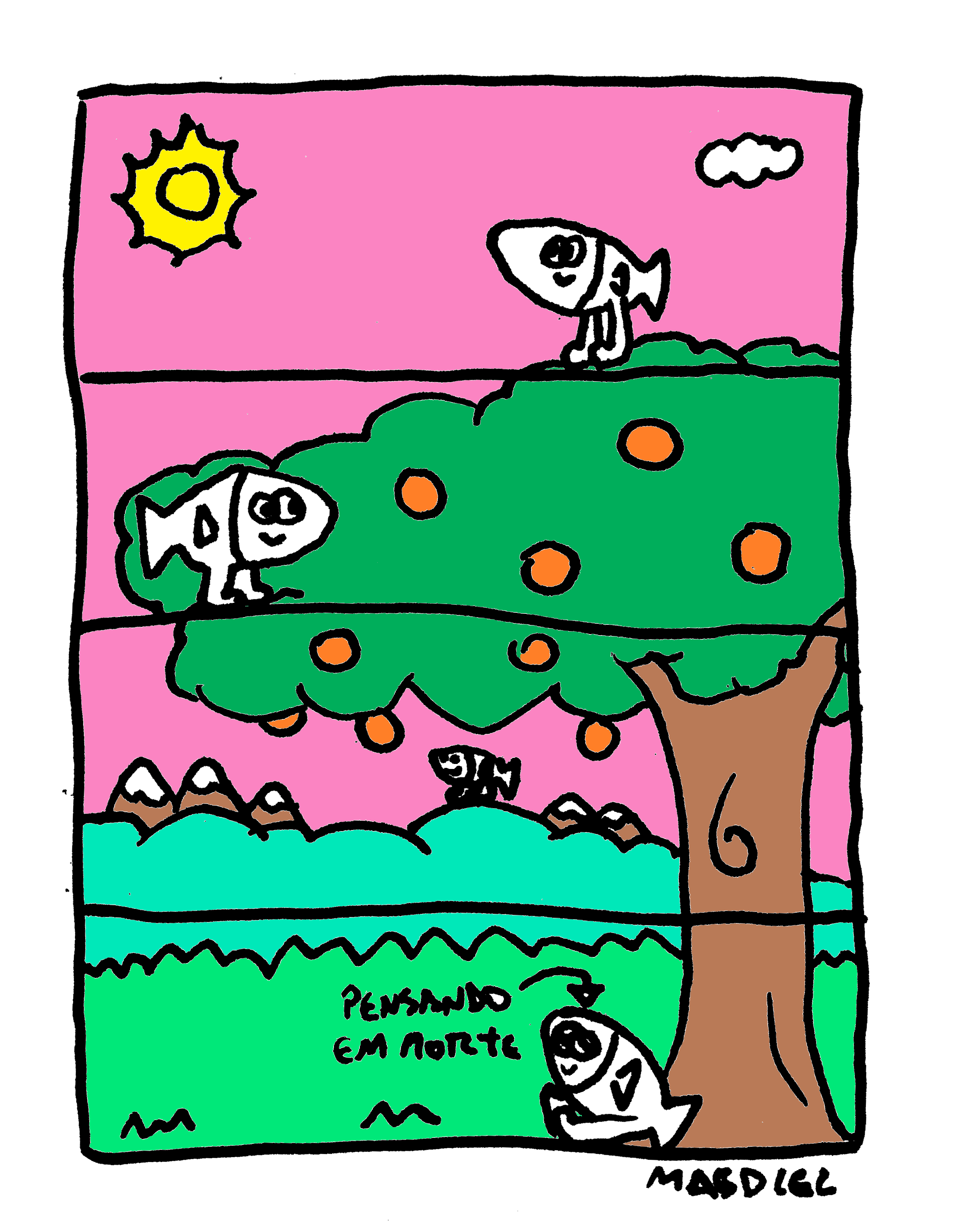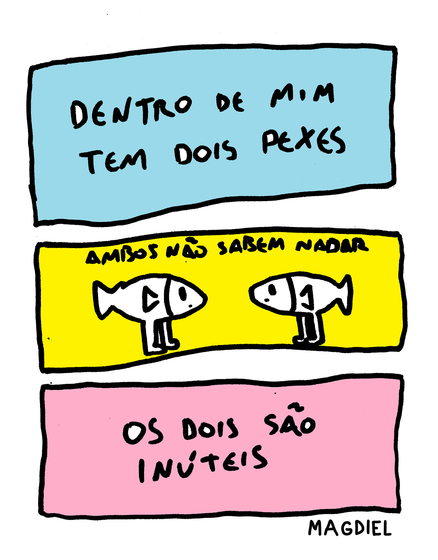 Esta coleção de tirinhas retrata o cotidiano e situações desse peixe, que dizem por aí, é nada mais nada menos que o próprio autor.