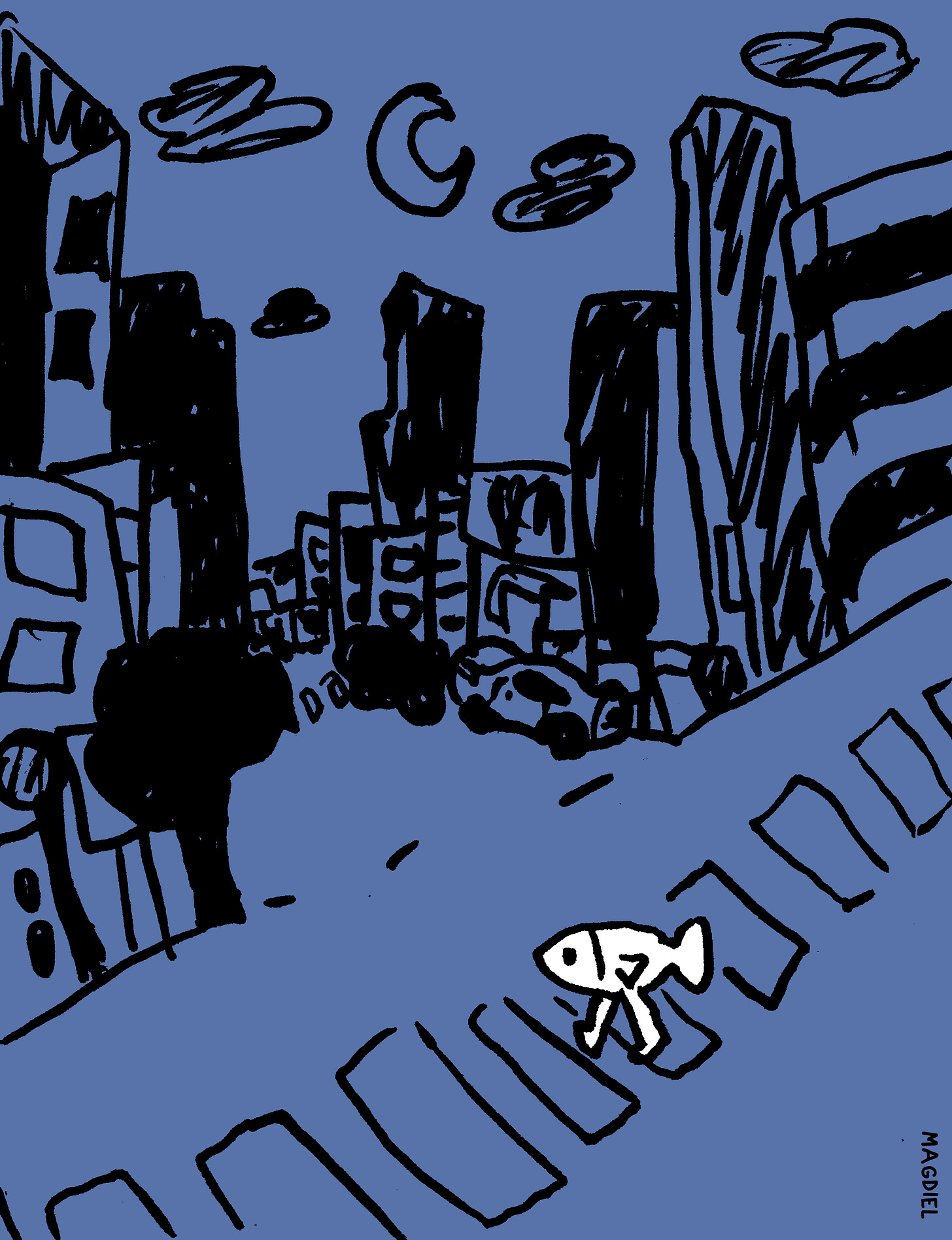 E se ao sair da água, o peixe com pernas na verdade se deparasses com toda uma sociedade estabelecida? Elu encontra dificuldades para sobreviver na superfície, tendo de lidar com problemas da vida, que o impede de evoluir.