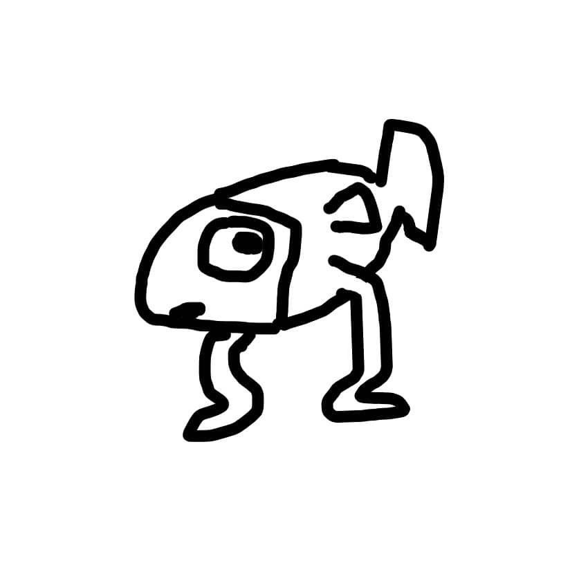 Bem, ao pensar tudo isso e ter amado minha criação repentina, publiquei o desenho e usei de foto de perfil. Mas ainda não havia intenções de se tornar uma marca, um retrato meu, que costumava usar auto-retratos de imagem de perfil. Ainda me considerava um humano (pior, um homém, embora tivesse minhas dúvidas), que usava como ícone um desenho pelo qual me sentia representado. Mas ainda era o Magdiel, apenas o cara que desenhava no Paint (nessa época eu só desenhava usando Microsoft Paint). Até que as pessoas começaram a me associar ao peixe, e me chamar de “peixe com pernas”. E foi assim que aceitei e me apeguei a essa identidade.