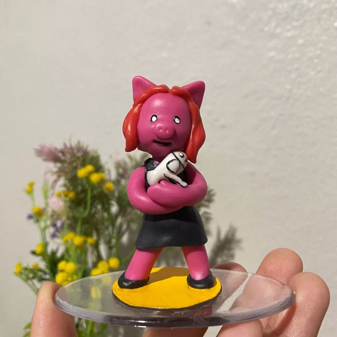 A artista Raquel Ramos (minha companheira), se identifica como um porquinho desde criança. E isso surgiu por inicialmente ter um porquinho de pelúcia que amava, ir atrás de outro e sua mãe começar a lhe presentear com mais porquinhos (até virar uma coleação).